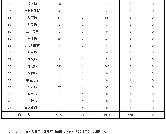 注:運行網(wǎng)站數(shù)據(jù)取自全國政府網(wǎng)站信息報送系統(tǒng)2017年9月1日的數(shù)據(jù)。