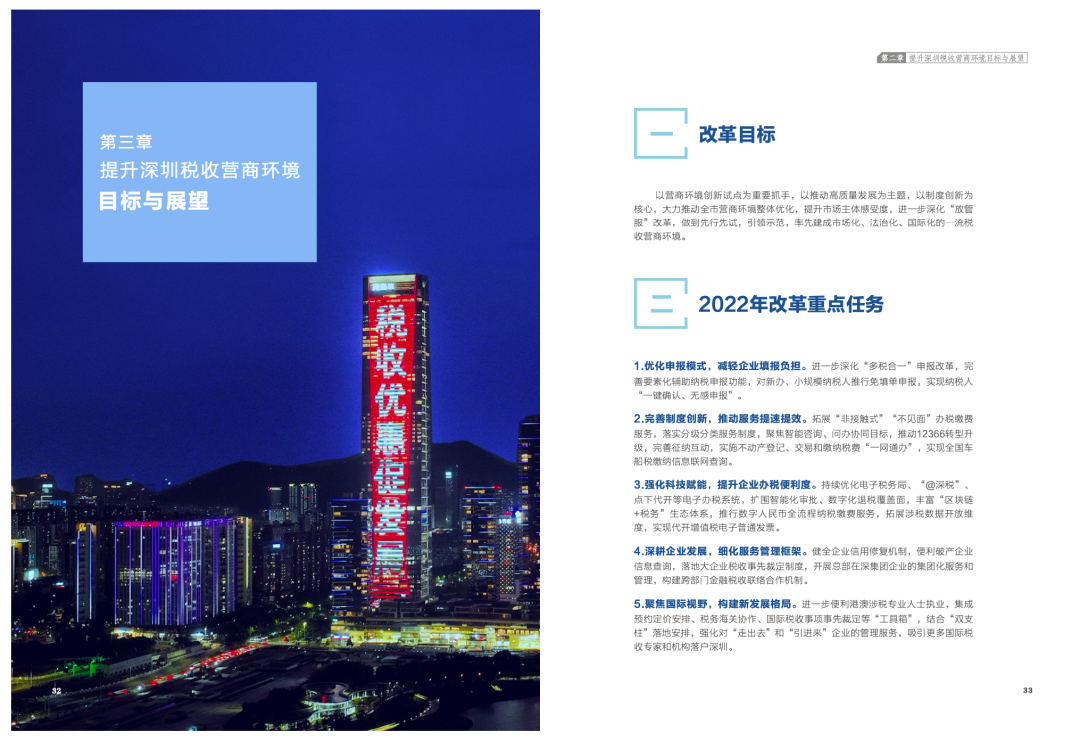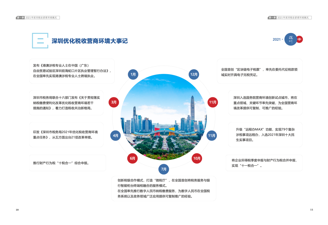 4月24日,深圳市稅務(wù)局正式發(fā)布2021年度《優(yōu)化稅收營(yíng)商環(huán)境改革備忘錄》,從減少納稅時(shí)間、提升辦稅體驗(yàn)、落實(shí)減稅政策、優(yōu)化業(yè)務(wù)流程、擴(kuò)展個(gè)性辦稅、聚焦灣區(qū)互通六個(gè)方面,對(duì)過(guò)去一年優(yōu)化稅收營(yíng)商環(huán)境大事記進(jìn)行總結(jié)回顧。